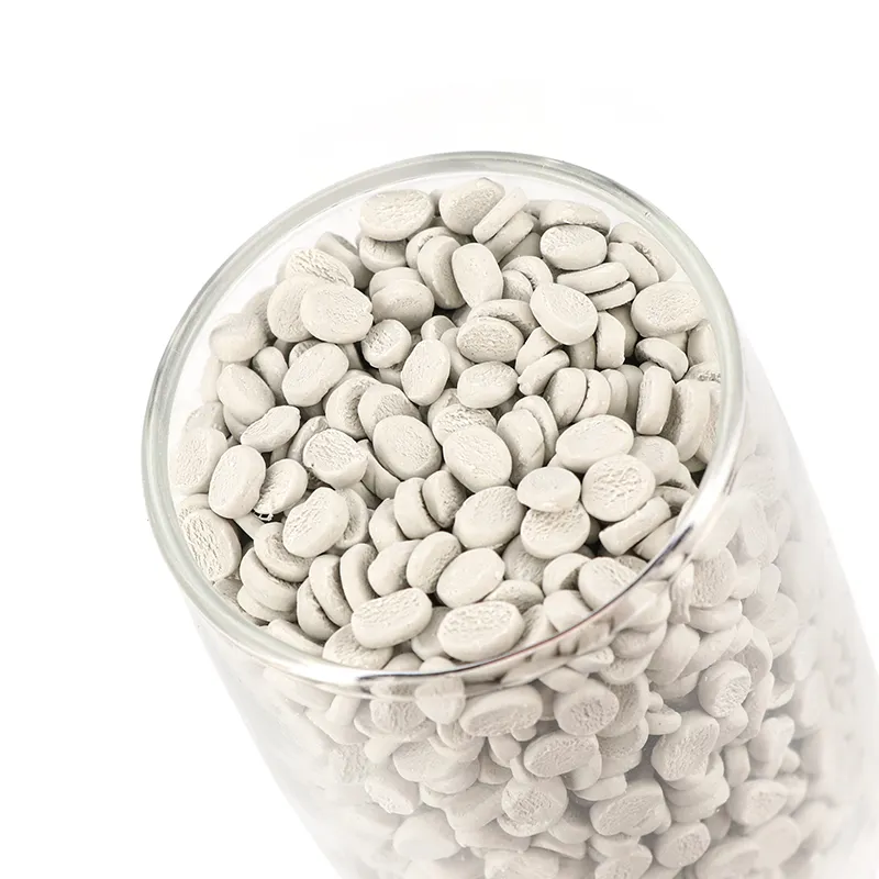 Penerangan Produk: China yang dipenuhi MasterBatch adalah bantuan pemprosesan plastik yang terdiri daripada resin pembawa, pengisi (seperti kalsium karbonat, serbuk talcum) dan bahan tambahan (dispersan, agen rawatan permukaan, dan lain -lain), terutamanya digunakan dalam pengeluaran produk polyolefin. Ia dibuat menjadi granul dengan premixing pengisi dan resin yang tinggi, dan resin asas ditambah secara berkadar semasa pengacuan plastik untuk mengoptimumkan prestasi pemprosesan dan mengurangkan kos. Resin pembawa harus bersesuaian dengan resin matriks dan mempunyai titik lebur yang sesuai, sementara aditif memastikan penyebaran seragam pengisi. Bahan ini digunakan secara meluas dalam bidang seperti filem, beg tenunan, dan produk suntikan yang dibentuk. Ia dapat meningkatkan ketegaran dan mengurangkan kadar pengecutan, tetapi ia boleh menjejaskan ketelusan dan ketahanan.